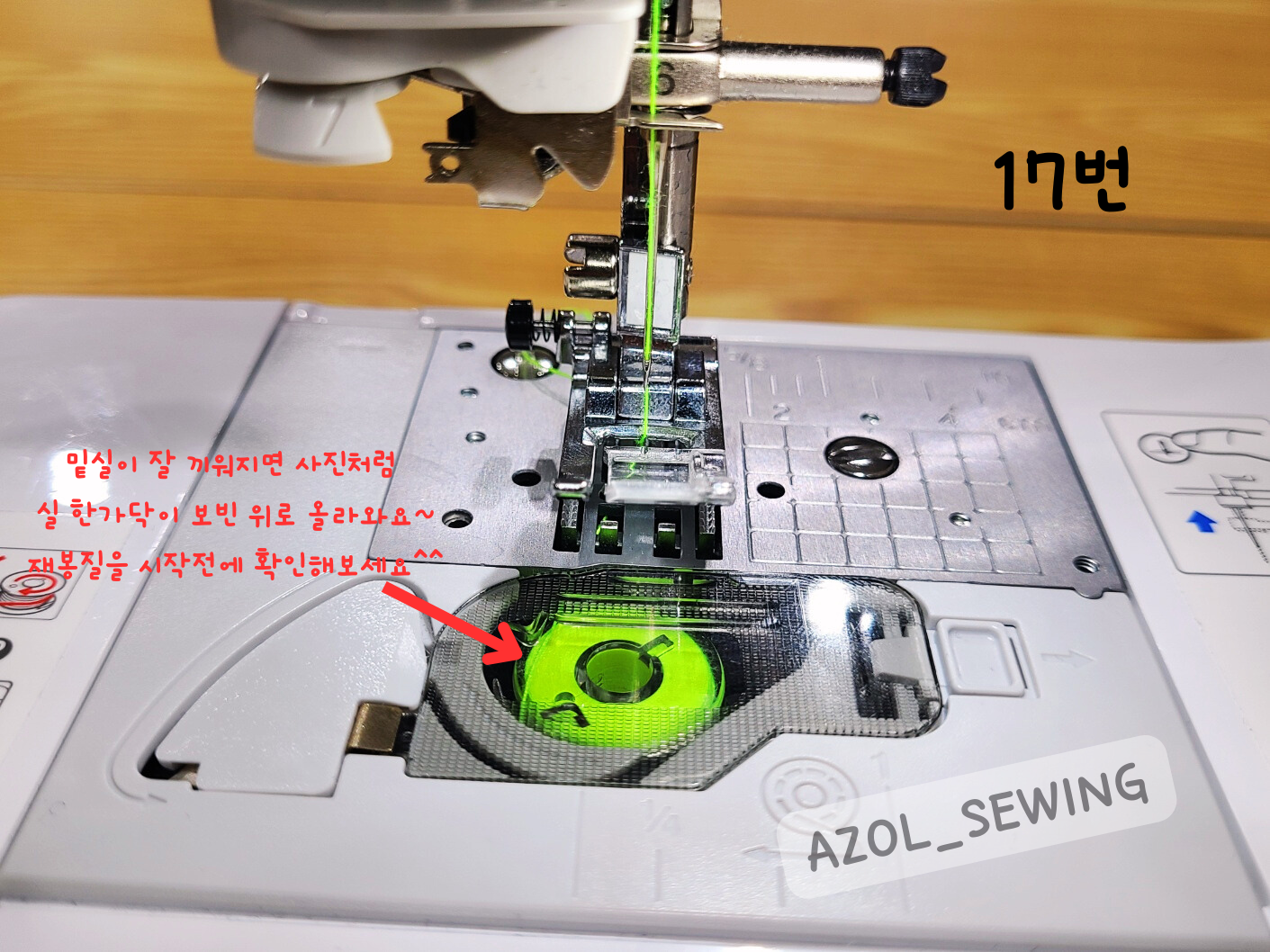(밑실이 정상적으로 끼워지면 실이 한가닥 올라와요~ 이점 확인해주세요.)