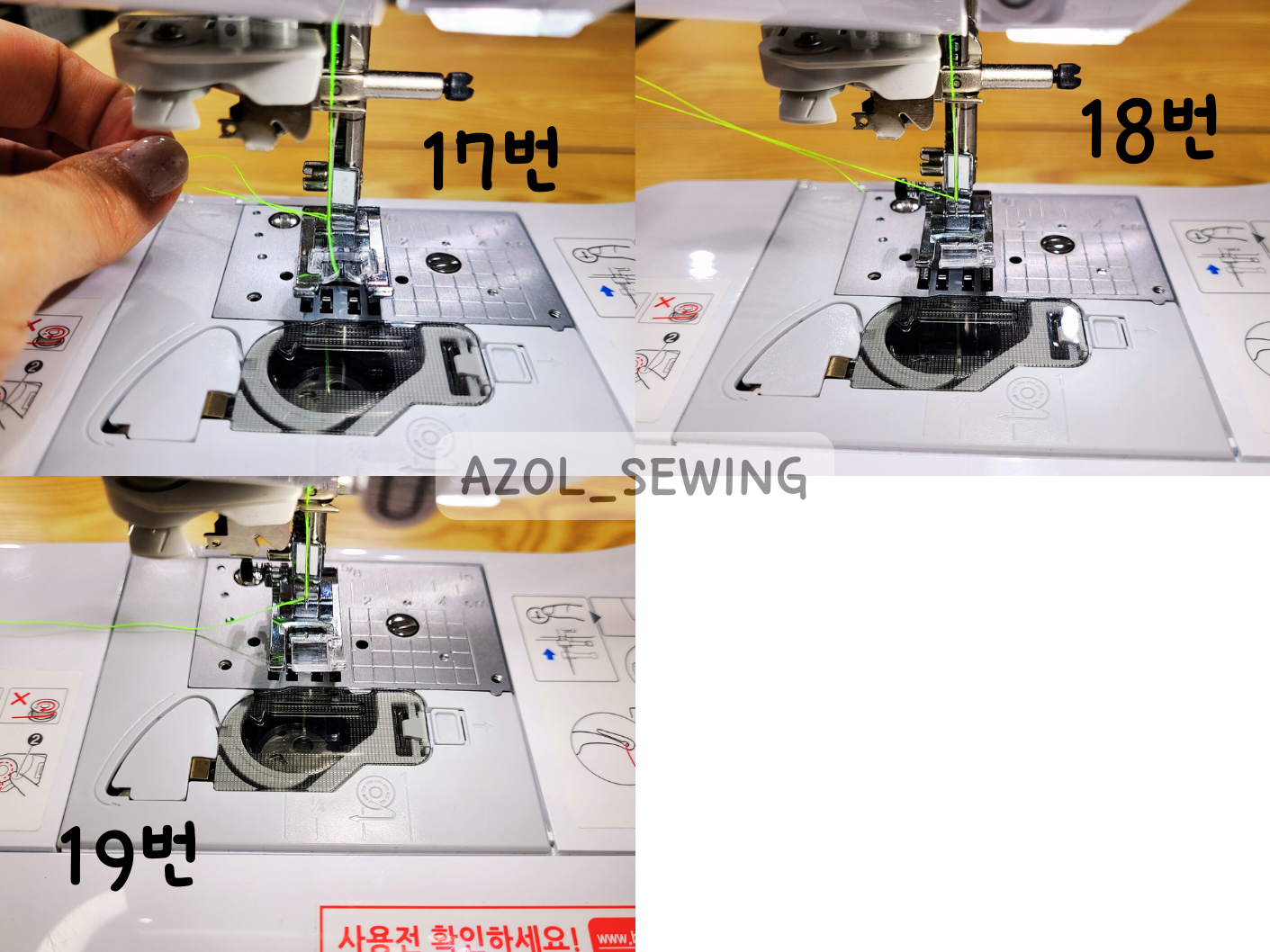 2번~4번 사진: 재봉틀에 그려진 점선을 따라서 1->2->3 순서대로 따라가시면 됩니다.