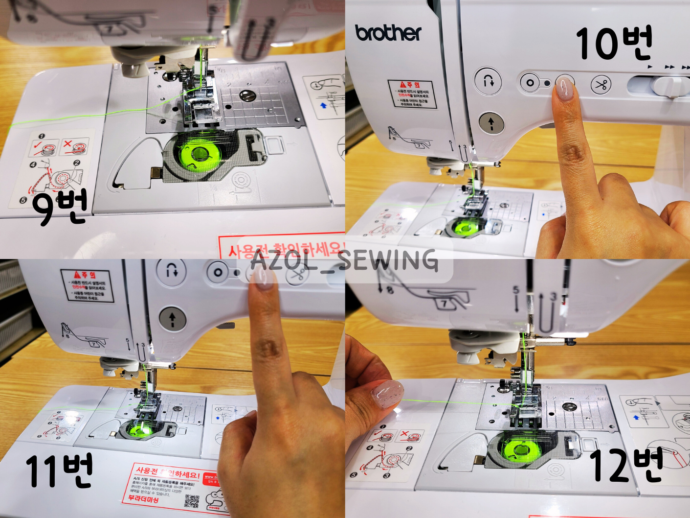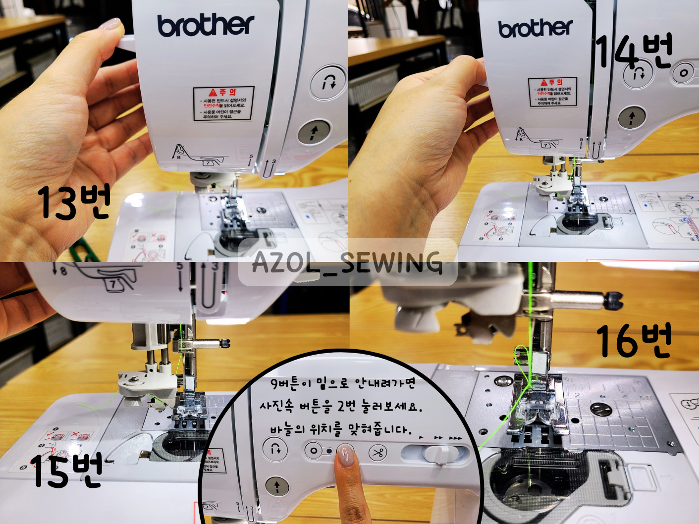 9번~11번 사진: 10번사진과 같이 자동바늘내리기 버튼을 눌러주시면 바늘이 내려갔다 올라와요.